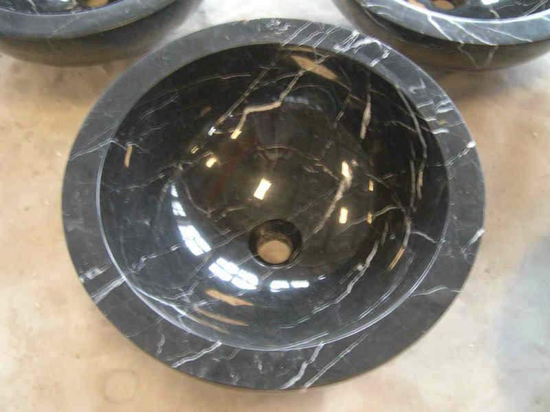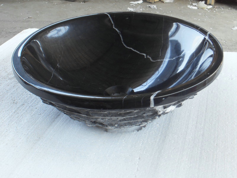 Schwarzer Marquina Marmor Handgeschnitzte Spüle