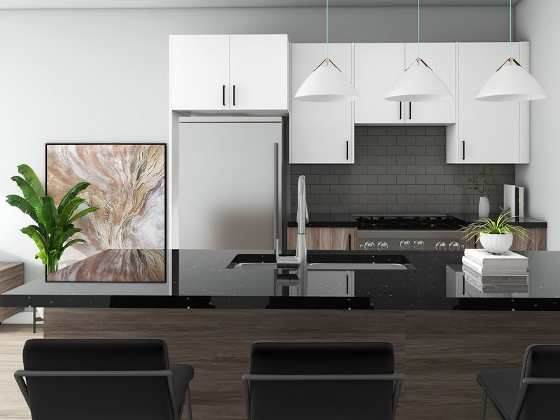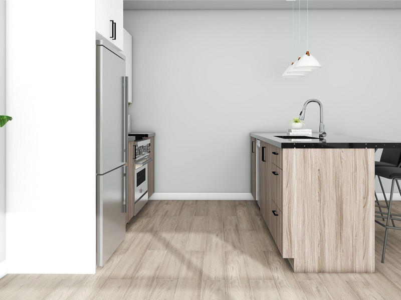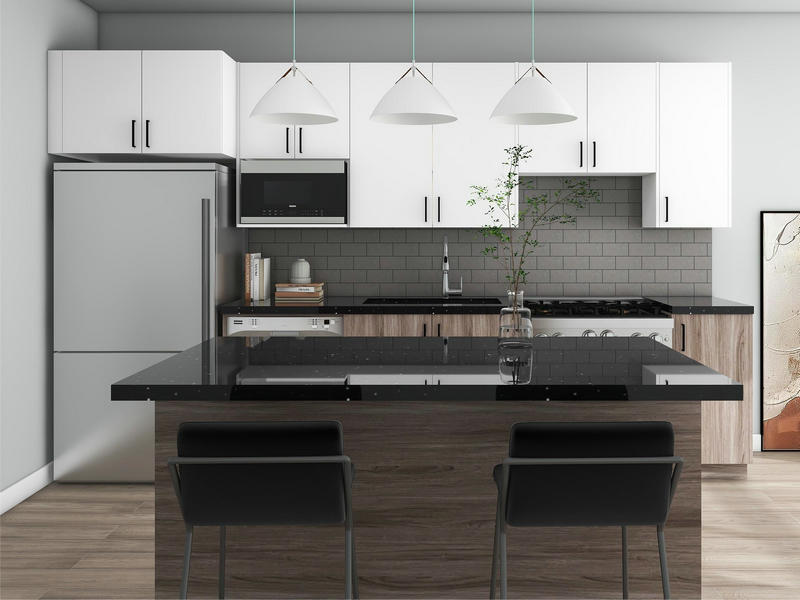 Rahmenloser Melamin -Küchenschrank ist eine moderne und funktionale Schrankoption für Küchen. Es zeichnet sich durch sein schlankes und nahtloses Design aus, da es einen vorderen Rahmen fehlt, was zu einem sauberen und zeitgemäßen Erscheinungsbild führt. Der Schrank wird unter Verwendung von Melaminmaterial konstruiert, das Haltbarkeit, Widerstand gegen Wärme, Feuchtigkeit und Flecken bietet. Es verfügt über eine Vielzahl von Oberflächen und Farben, mit denen die Anpassungen zu unterschiedlichen Küchenstilen geeignet sind. Das rahmenlose Design maximiert den Speicherplatz und bietet einen einfachen Zugang zum Inhalt. Diese Art von Schrank wird in Wohnküchen häufig eingesetzt und bietet eine praktische und stilvolle Lösung für die Organisation von Küchen wichtig.