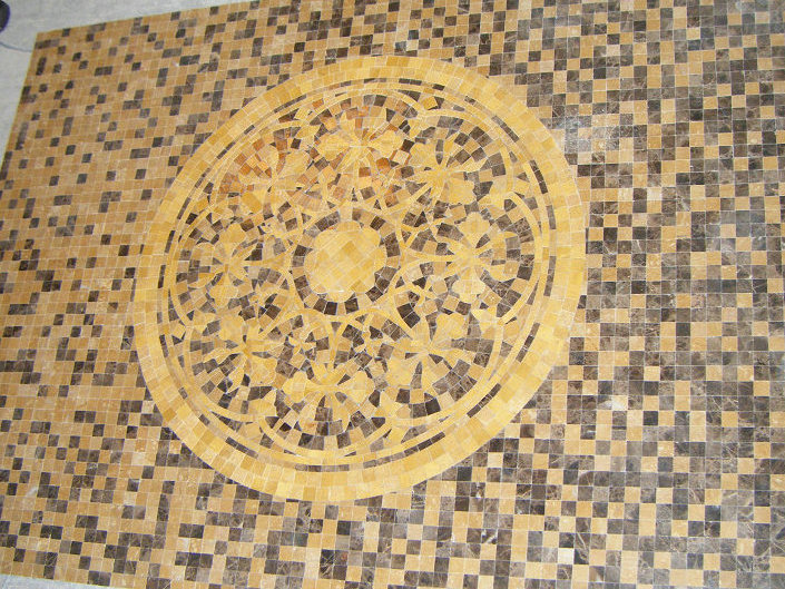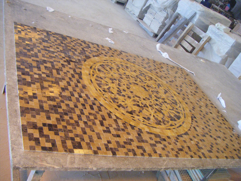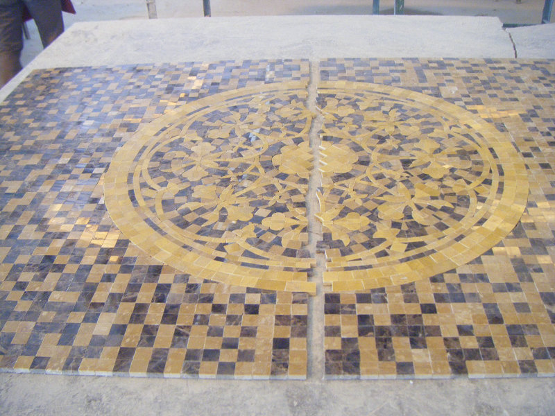 Das Mosaikmuster -Design kann natürliche Elemente wie Blumen, Blätter oder abstrakte Motive enthalten und dem Boden oder Wandflächen einen Hauch von Kunst verleihen. Es ist eine vielseitige Designauswahl, die sowohl für traditionelle als auch für zeitgenössische Umgebungen geeignet ist, um die allgemeine Ästhetik zu verbessern und eine luxuriöse Atmosphäre zu schaffen. Die Verwendung von natürlichen Marmor sorgt für Haltbarkeit und Langlebigkeit und macht das Mosaikmuster zu einer ausgezeichneten Wahl, um die Schönheit und den Wert eines beliebigen Raums zu verbessern.