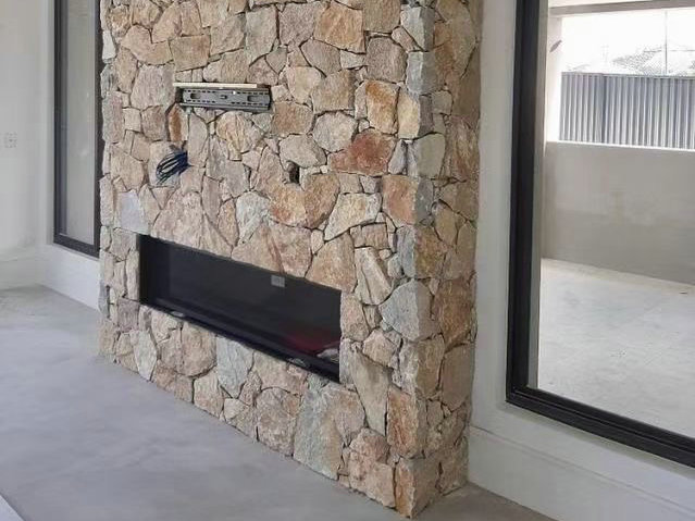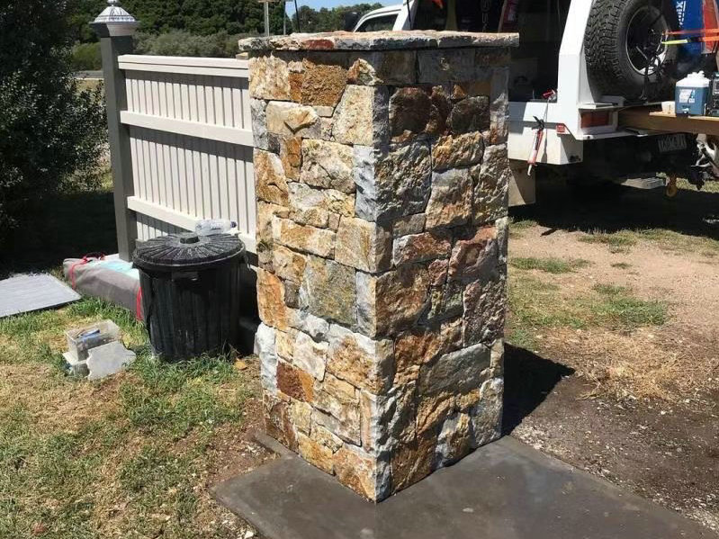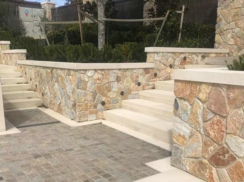 Natürliche rustikale, gelbe zufällige, lose Steinmauerverkleidung wird üblicherweise zur Verbesserung des Außen- oder Innenaussehens von Gebäuden verwendet. Es bietet eine rustikale und natürliche Ästhetik für Wände und verleiht ihnen ein zeitloses und charmantes Aussehen. Die unregelmäßige Anordnung der Steine erzeugt ein einzigartiges und ansprechendes Muster, das jedem Raum Textur und visuelles Interesse hinzufügt. Diese Art der Wandverkleidung wird häufig in verschiedenen Anwendungen, einschließlich Wohnheimen, Gewerbegebäuden und Landschaftsbauprojekten, verwendet, um eine warme und einladende Atmosphäre zu schaffen。