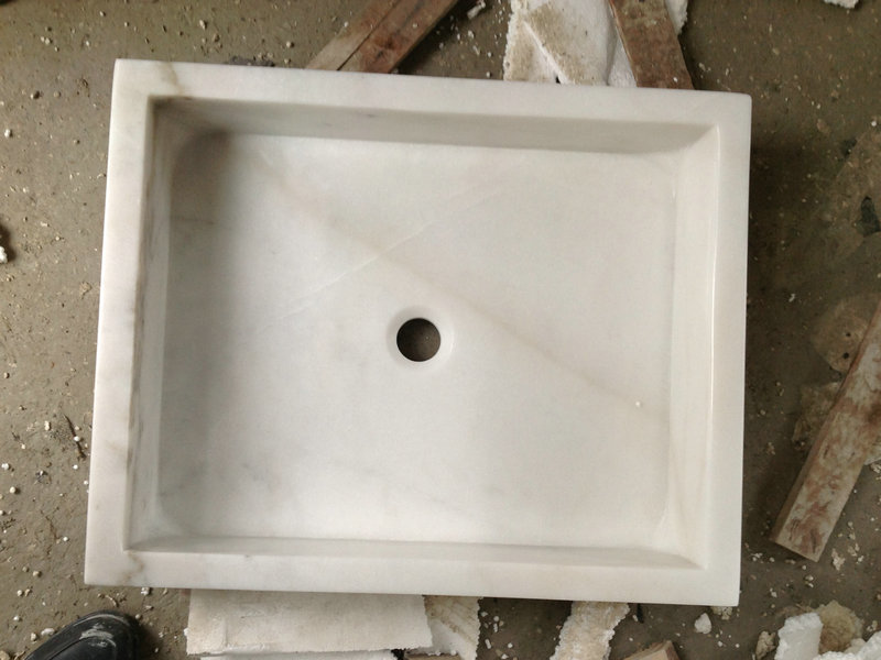 Ein Waschbecken des Carrara White Marmor Art Design ist eine atemberaubende und elegante Ergänzung für jedes Badezimmer. Hergestellt aus hochwertiger Carrara White Marmor, zeigt es die natürliche Schönheit des Steins mit seinen einzigartigen Venen und Mustern. Das Becken ist mit einer kunstvollen Note mit komplizierten Details und einer eleganten, modernen Form ausgestattet.